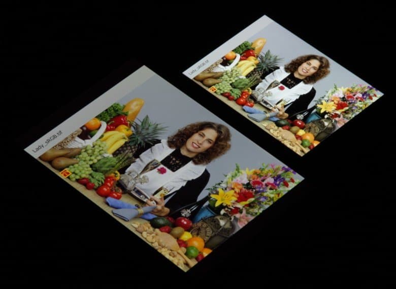 Отметим, что на экранах с широким цветовым охватом (без соответствующей коррекции) цвета́ обычных изображений, оптимизированных для устройств sRGB, выглядят неестественно насыщенными. Отсюда и рекомендация: в большинстве случаев смотреть кино, фотографии и все естественное лучше при выборе профиля Стандартный режим, и только если фотография сделана на установке Adobe RGB, имеет смысл переключить профиль на Фото. Аналогично, профиль Адаптивный режим уместен при просмотре видеоматериала с охватом DCI-P3, принятым в цифровом кинематографе.