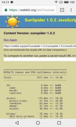 Что касается бенчмарков для оценки скорости движка javascript, то стоит всегда делать скидку на то, что в них результаты существенно зависят от браузера, в котором запускаются, так что сравнение может быть истинно корректным только на одинаковых ОС и браузерах, а такая возможность имеется при тестировании не всегда. В случае с ОС Android мы всегда стараемся использовать Google Chrome.