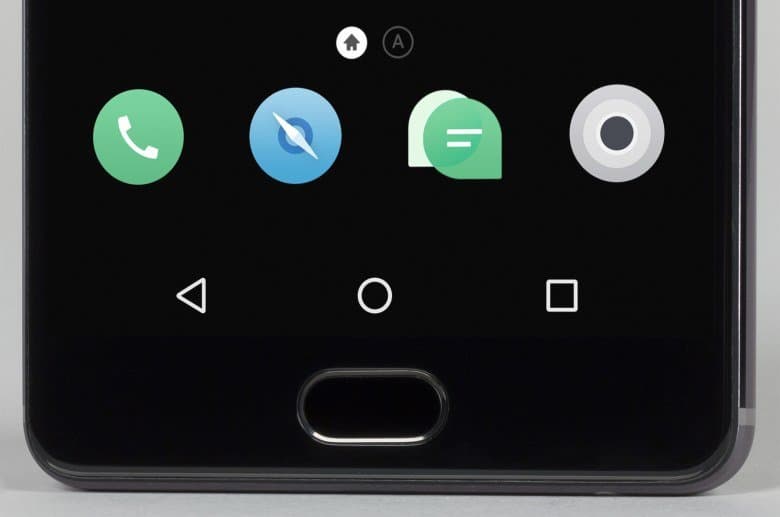Внизу под экраном стандартно для Meizu установлена лишь одна кнопка, причем нажимаемая. В нее врезана площадка сканера отпечатков пальцев mTouch (360 градусов сканирования, считывание за 0,15 с). Если же вам неудобно пользоваться схемой управления Meizu, подразумевающей выполнение разных функций по одиночному, двойному и длительному нажатию на центральную клавишу, всегда можно прибегнуть к помощи экранной панели кнопок.