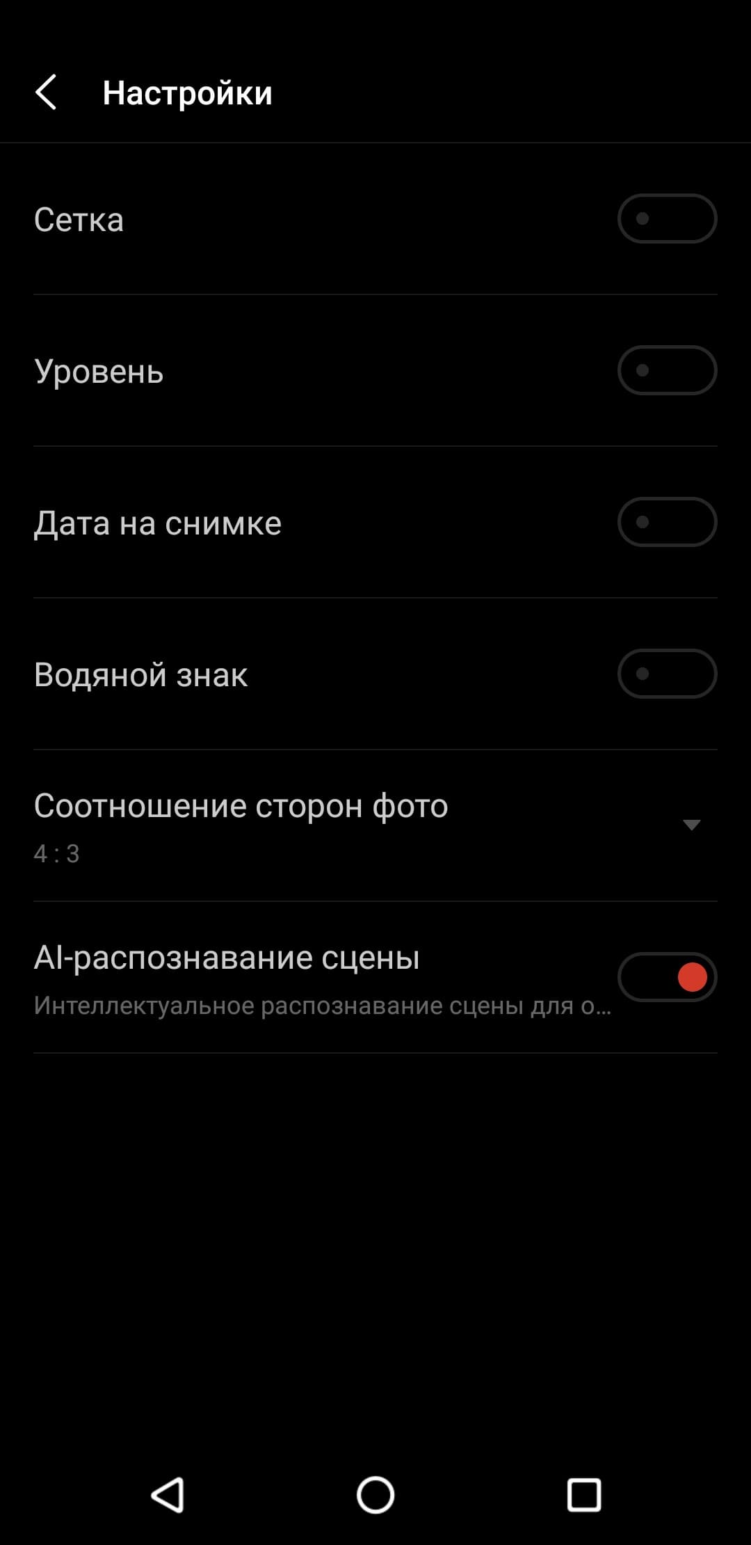 Искусственный интеллект отвечает за распознавание сцен и улучшение снимков в автоматическом режиме. Есть режим HDR, есть режим с размытием фона, а также режим ручных настроек. Штатной возможности сохранения снимков в RAW нет.