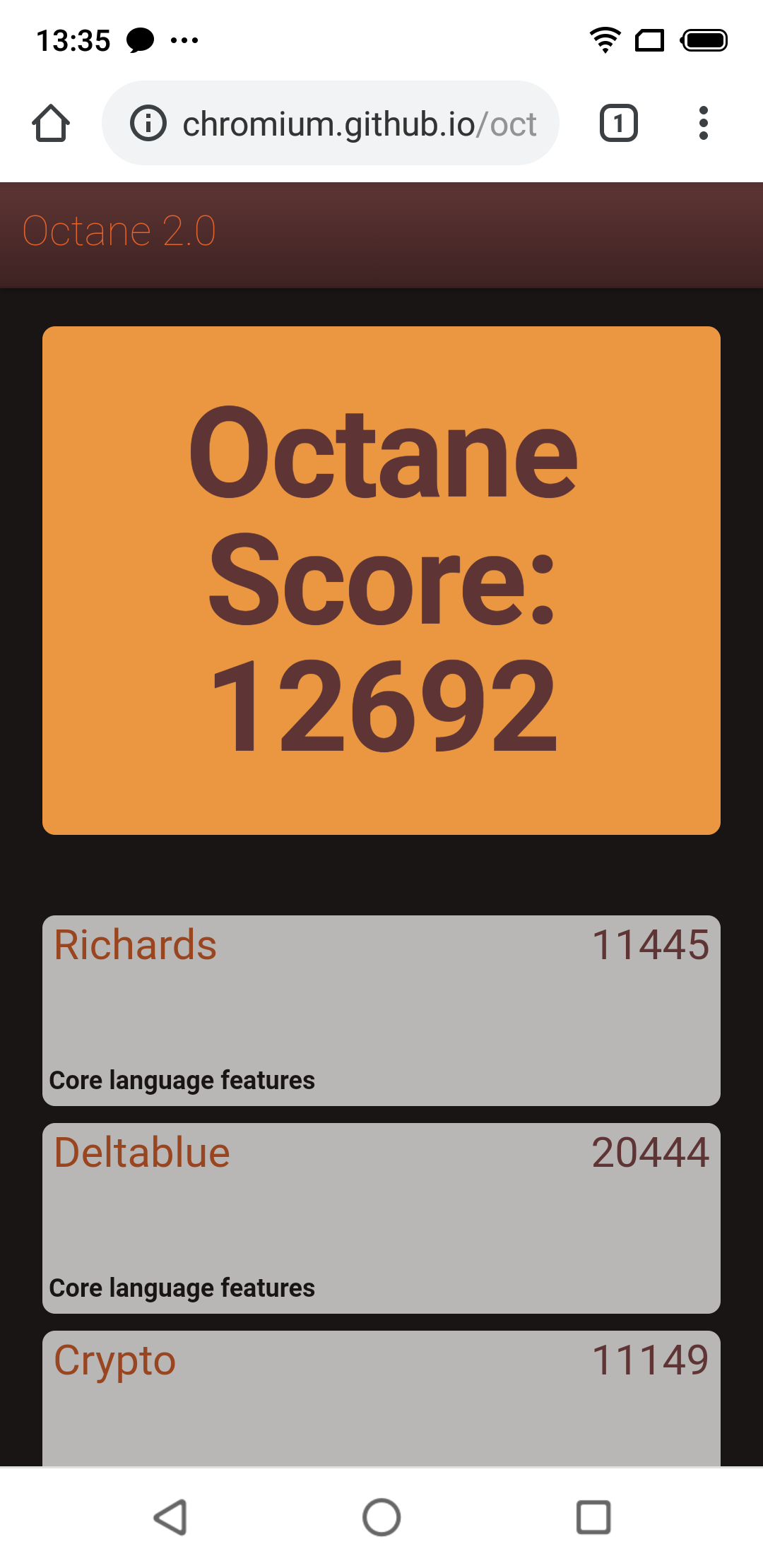 | Google Octane 2 (больше — лучше) | 12692 | 9053 | 10331 | 8162 | 10491 |