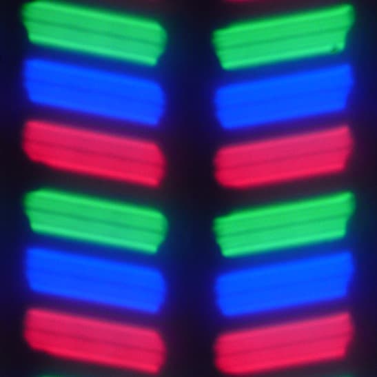 В данном смартфоне используется матрица типа IPS. Микрофотографии демонстрируют типичную для IPS структуру субпикселей: