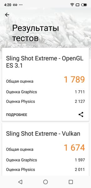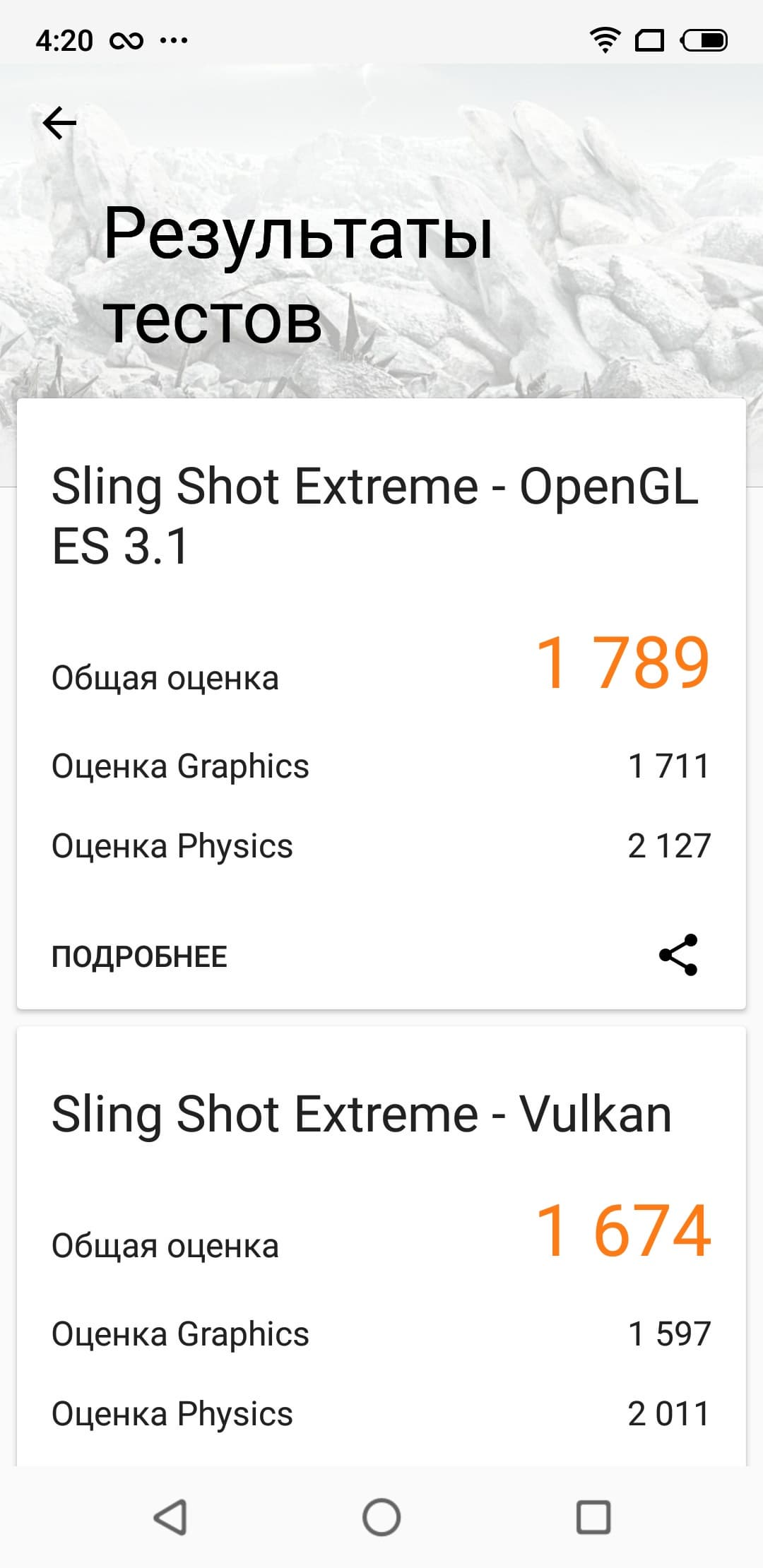| 3DMark Ice Storm Sling Shot Ex Vulkan (больше — лучше) | 1674 | 1366 | 1271 | 928 | 1374 |