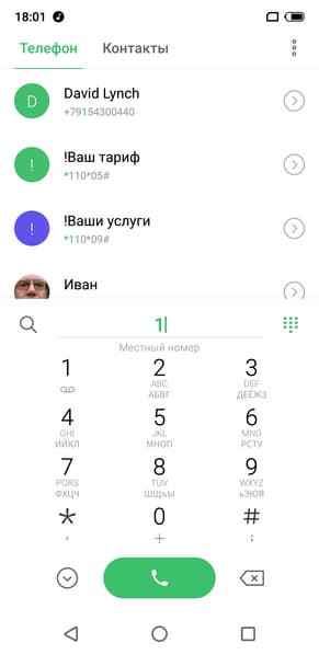 Телефонное приложение поддерживает Smart Dial, то есть во время набора телефонного номера сразу осуществляется и поиск по первым буквам в контактах. Способы сортировки и отображения контактов стандартны для интерфейса Android.