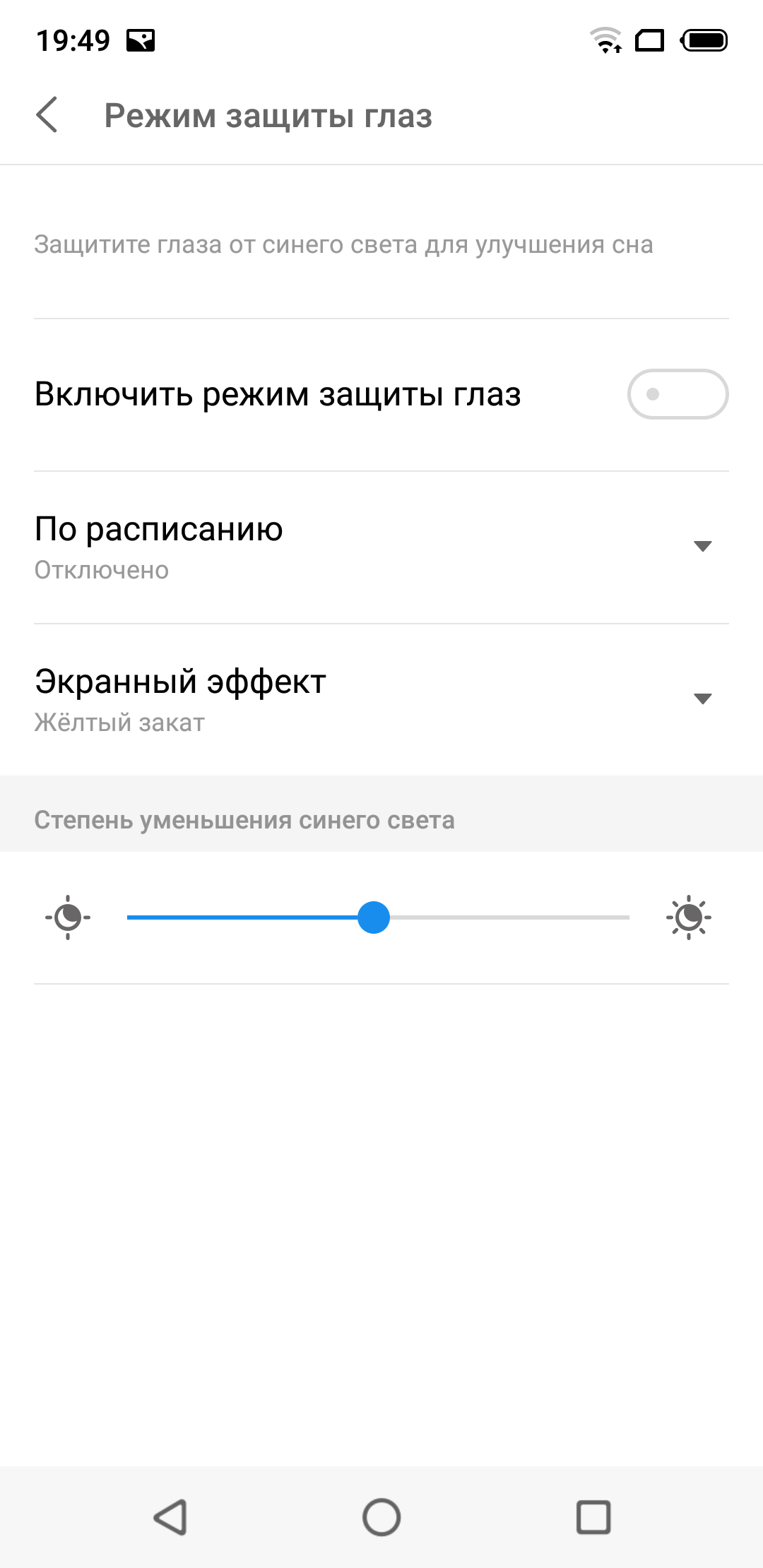 Присутствует настройка, позволяющая снизить интенсивность синей компоненты.