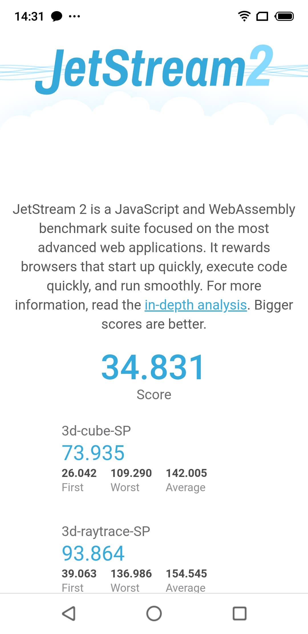 | JetStream 2 (больше — лучше) | 35 | 31 | 28 | 27 | 29 |