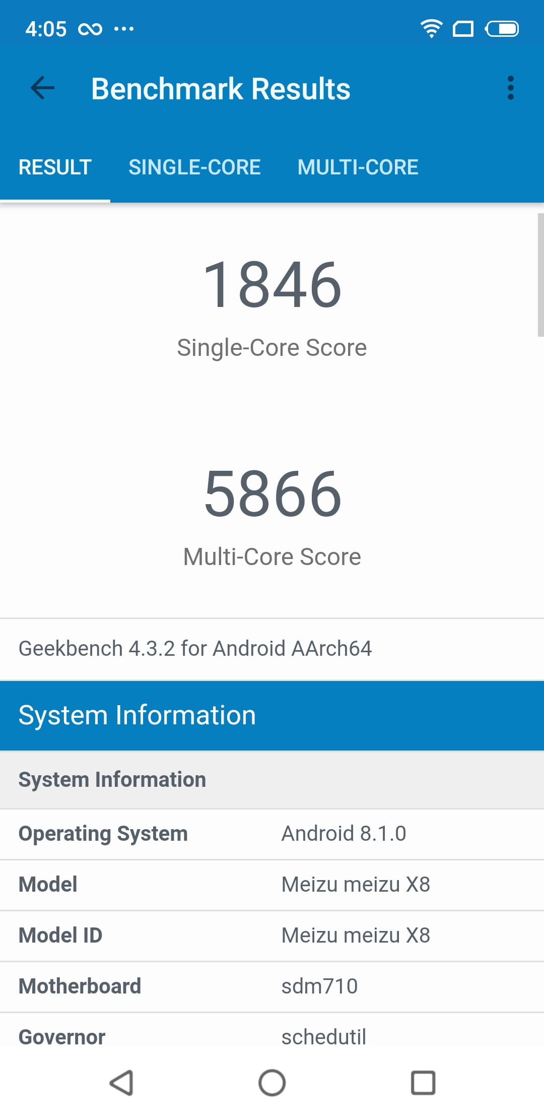 | Meizu X8 (Qualcomm Snapdragon 710) | Honor 10i (HiSilicon Kirin 710) | Redmi Note 7 (Qualcomm Snapdragon 660) | Nokia 7.1 (Qualcomm Snapdragon 636) | Samsung Galaxy A50 (Samsung Exynos 9610) | |
