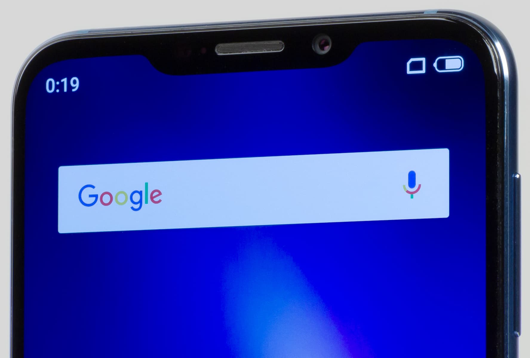 Вырез в экране есть, и это, к сожалению, не «капля», а «челка», причем широкая. При этом она какая-то невысокая, выглядит изящно, не так раздражает, как у зачинщика моды, iPhone X.