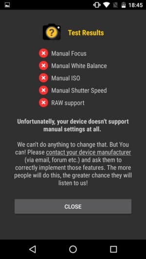 Ручных настроек в меню не так много, но все необходимое имеется. Вручную можно выставлять экспозицию, светочувствительность (до ISO 1600), баланс белого, выдержку, выбирать дополнительные режимы и цветовые эффекты, есть HDR. Передавать управление настройками камеры сторонним приложениям с помощью Camera2 API нельзя, возможности записи снимков в RAW тоже нет.