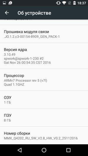 - SoC Qualcomm Snapdragon 210 (MSM8909), 4 ядра ARM Cortex-A7 @1,1 ГГц