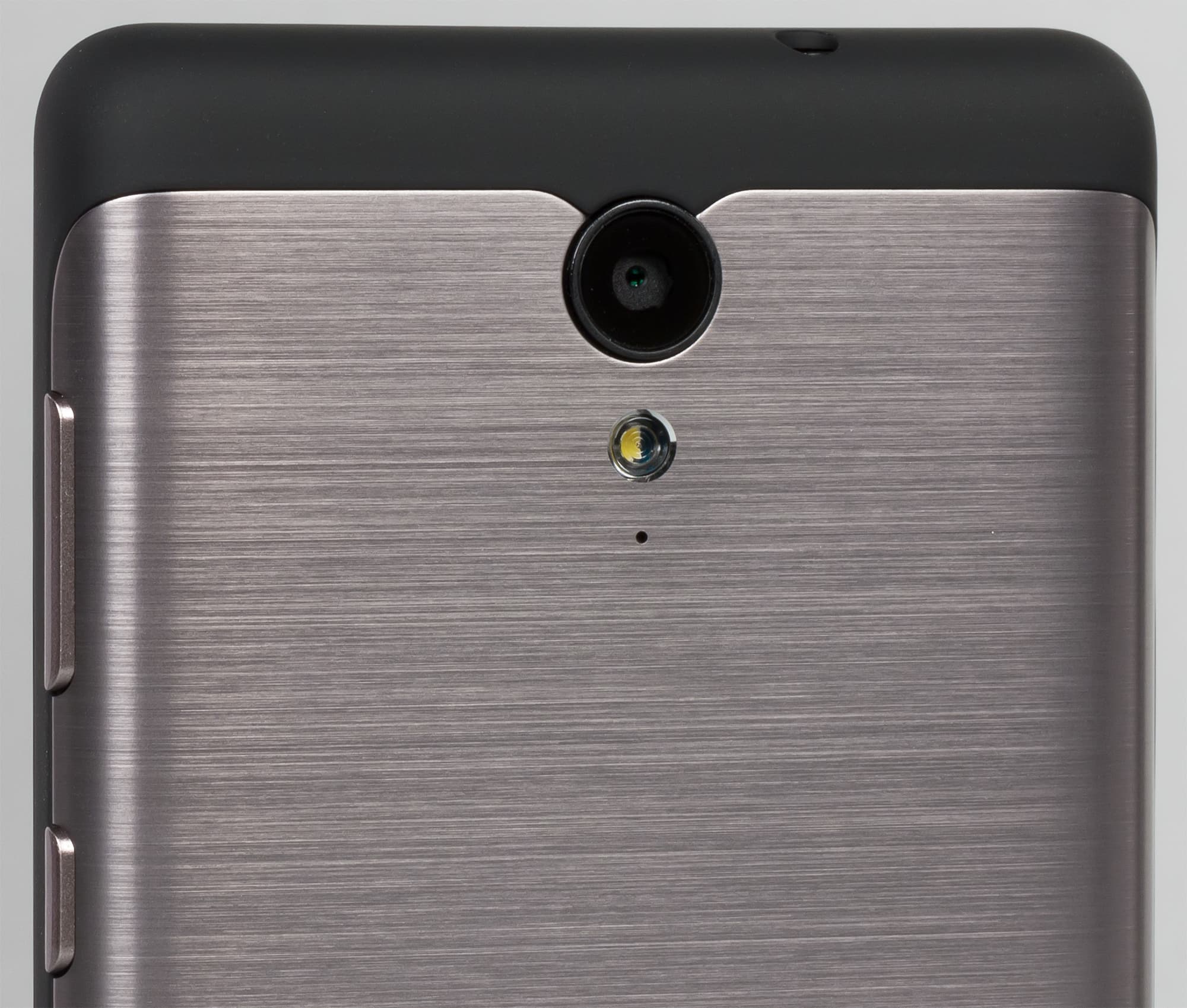 Модуль камеры буквально на миллиметр выпирает за пределы поверхности корпуса, и благодаря сильно покатой задней стенке смартфон заметно покачивается при прикосновениях к экрану, лежит на твердой поверхности весьма неустойчиво. Рядом с камерой можно заметить глазок не очень яркой односегментной светодиодной вспышки.