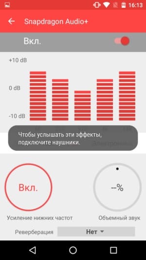 Для прослушивания музыки предназначен музыкальный проигрыватель с приятным на вид интерфейсом и широким набором настроек встроенного эквалайзера. Можно вручную повлиять на насыщенность басов и виртуализацию объемного звучания, но только с подключенными наушниками. И в наушниках, и в основном динамике качество звучания среднее, соответствует уровню аппарата. Звук обладает достаточным запасом громкости, довольно чистый, но не насыщенный, однотонный, с преобладанием высоких частот.