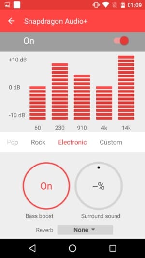 Для прослушивания музыки предназначен музыкальный проигрыватель с приятным на вид интерфейсом и довольно богатыми настройками встроенного эквалайзера. Можно вручную повлиять на насыщенность басов и виртуализацию объемного звучания. Качество звука среднее, оно соответствует уровню аппарата: и в наушниках, и в основном громкоговорителе звук довольно громкий, чистый, но простенький, ненасыщенный, однотонный, с преобладанием высоких частот. Если с помощью эквалайзера вручную добавлять басов, то звук становится глуховатым, менее звонким.