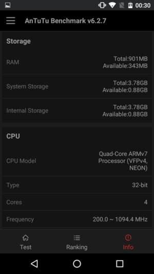 Qualcomm Snapdragon 210 — SoC совсем простенькая, даже некоторые альтернативные платформы начального уровня демонстрируют в тестах лучшие результаты, в том числе популярная на данный момент у производителей MediaTek MT6737. Snapdragon 210 оснащена маломощными процессорными ядрами Cortex-A7 с низкой частотой и таким же начального уровня видеоускорителем.