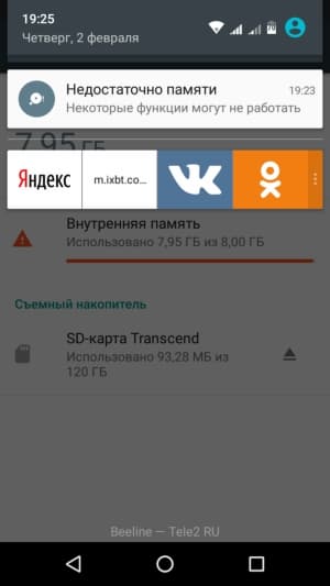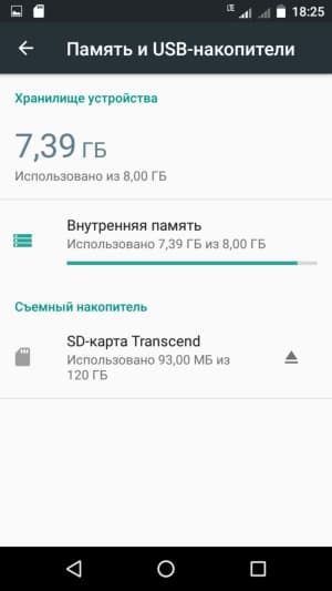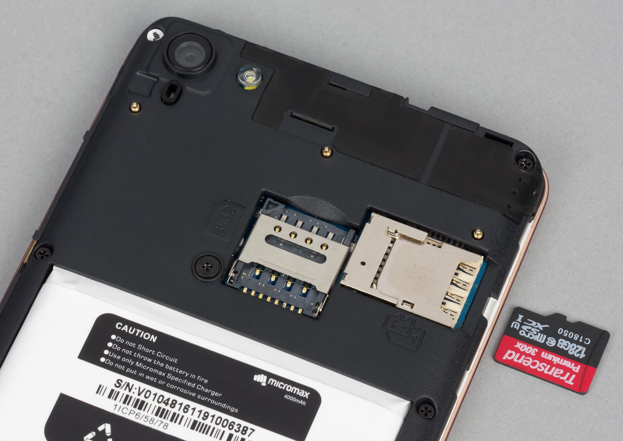 Ожидаемо, возможность установки карт памяти microSD имеется, и для этого не придется изымать одну из SIM-карт. Несмотря на то, что официально поддерживается объем microSD до 32 ГБ, на практике наша проверочная карта Transcend Premium microSDXC UHS-1 объемом 128 ГБ уверенно распозналась устройством. Можно отформатировать карту памяти так, чтобы на нее устанавливались приложения, для данной модели это животрепещущий вопрос.