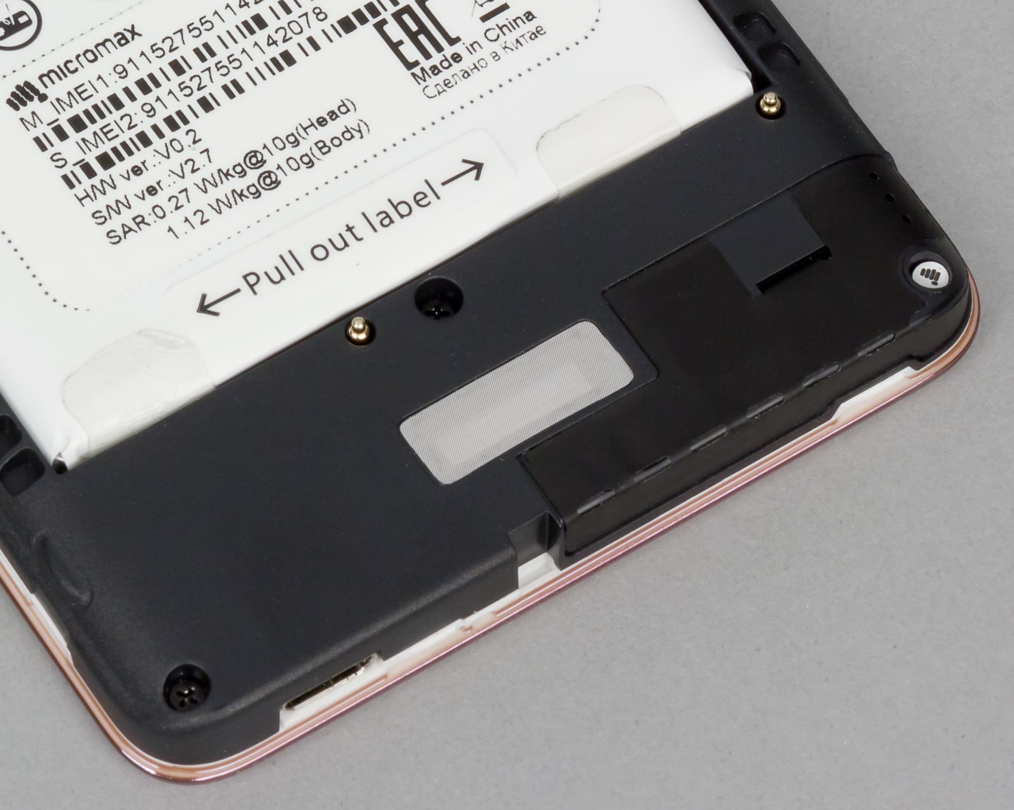 Для того, чтобы добраться до разъемов карт, необходимо снять заднюю крышку. Специального выступа для зацепления нет, упираться придется в вырез под разъем Micro-USB. Крышка довольно легко снимается, с этим проблем нет, но и удерживается на своих пластиковых защелках она на удивление надежно, корпус в целом монолитен и крепок, при сжатии нет ни люфта, ни скрипов.