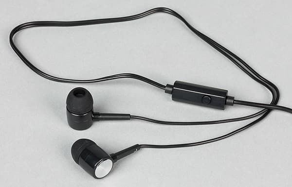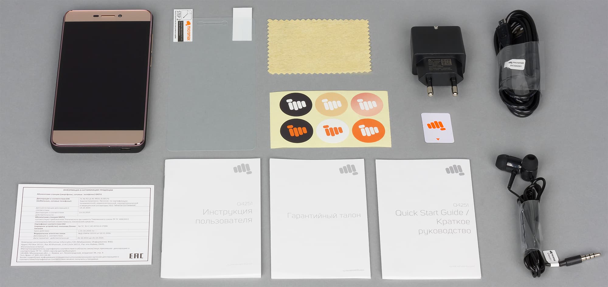Комплект поставки состоит из соединительного кабеля, мощного сетевого адаптера с выходным током и напряжением 2 А 5 В, проводной гарнитуры с резиновыми накладками внутриканального типа, защитной пленки на экран и бумажной инструкции на русском языке.