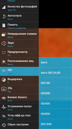 Ручных настроек в меню не так много, но все необходимое имеется. Вручную можно выставлять экспозицию, светочувствительность (до ISO 1600), баланс белого, выдержку, выбирать дополнительные режимы и цветовые эффекты, есть HDR. Не нашлось таких привычных функций, как обнаружение лиц, улыбки и возможность съемки по жесту. Передавать управление настройками камеры сторонним приложениям с помощью Camera2 API нельзя, возможности записи снимков в RAW тоже нет.