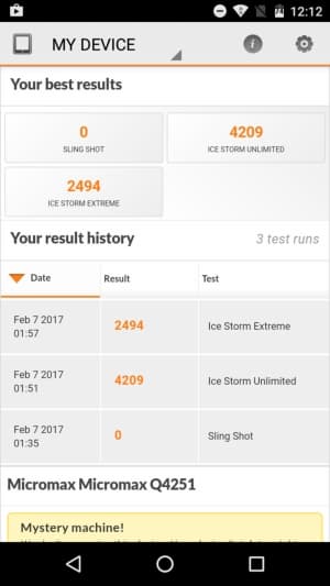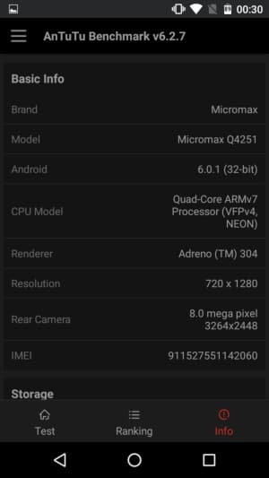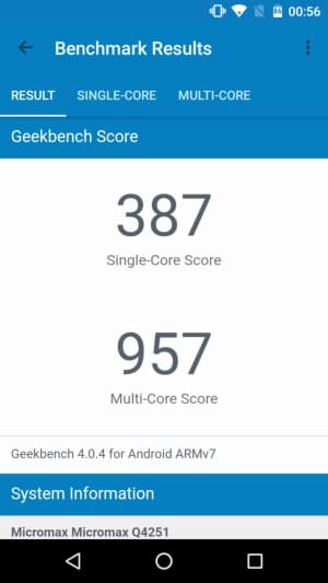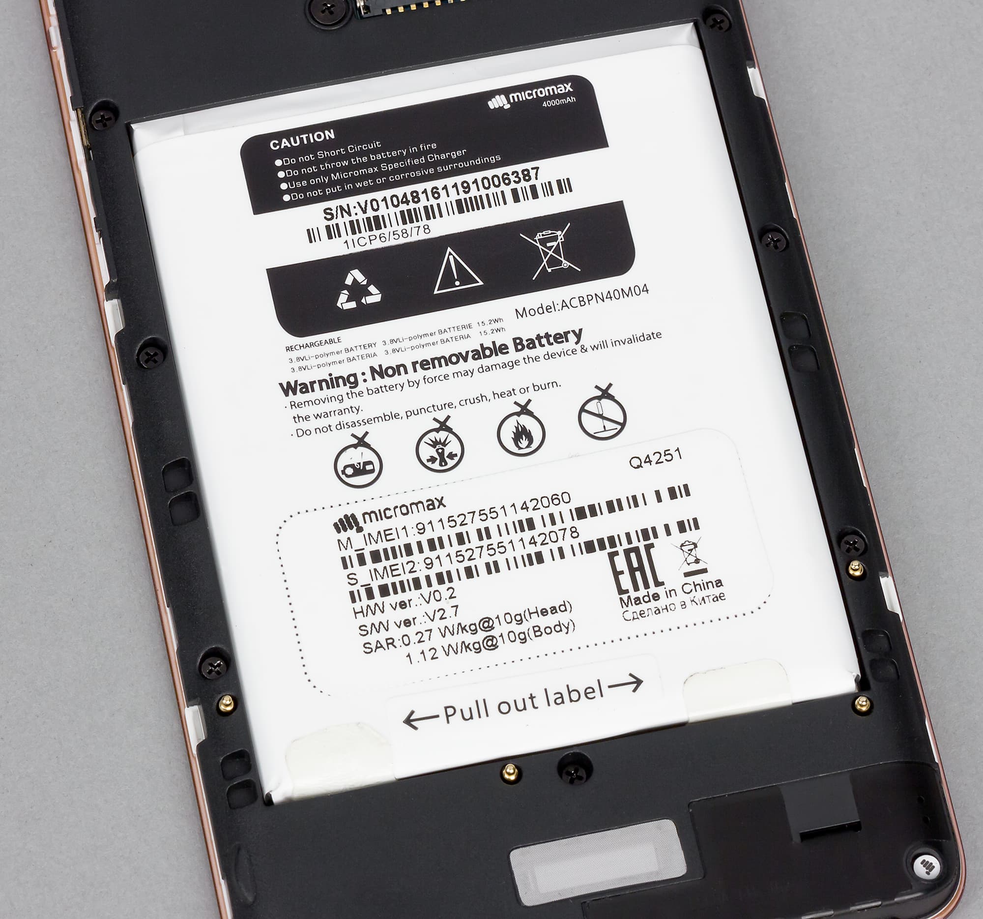 Несъемная аккумуляторная батарея, установленная в Micromax Canvas Juice A1, имеет большую емкость в 4000 мА·ч, и это основной козырь данной модели. Аппарат логично демонстрирует весьма высокий уровень автономности, результаты работы во всех тестах впечатляющие. А если учесть нетребовательную SoC и экран с невысоким разрешением, то и в реальных условиях эксплуатации смартфон будет достойно справляться с ежедневными задачами в течение пары дней без подзарядки. В общем, такой смартфон незаменим в дальней дороге, на что и делался упор. Но все, естественно, будет зависеть от вашего сценария использования. Сами же разработчики обещают до 6 часов в режиме разговора и до 350 часов в режиме ожидания, и это в целом близко к истине.
