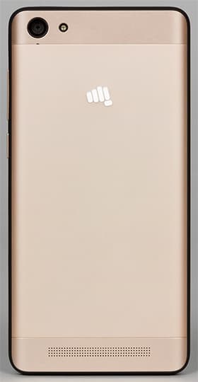 Выпускается Micromax Canvas Juice A1 в двух вариантах окраса: сером с черным боковым ободком и черной передней панелью, а также золотистом, у которого передняя панель золотистая, но боковой ободок тоже черный.