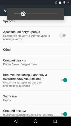Яркость дисплея можно подстраивать вручную или задавать автоматические настройки, основанные на работе датчика внешнего освещения. Тест AnTuTu диагностирует поддержку 5 одновременных касаний мультитач. Дополнительных способов активации дисплея с помощью двойного клика или иных жестов не предусмотрено.
