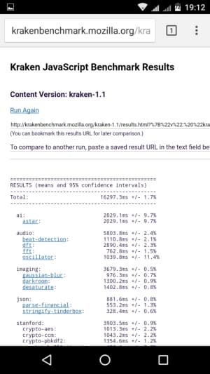 Что касается бенчмарков для оценки скорости движка javascript, то стоит всегда делать скидку на то, что в них результаты существенно зависят от браузера, в котором запускаются, так что сравнение может быть истинно корректным только на одинаковых ОС и браузерах, а такая возможность имеется при тестировании не всегда. В случае с ОС Android мы всегда стараемся использовать Google Chrome.