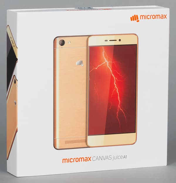 Micromax Canvas Juice A1 поставляется в продажу в довольно крупной плоской коробке квадратной формы с твердой картонной суперобложкой. Упаковки разных смартфонов компании отличаются именно этой суперобложкой, на которую наносятся все обозначения, логотипы и спецификации, а внутренняя часть остается абсолютно чистой и во всех случаях одинаковой.