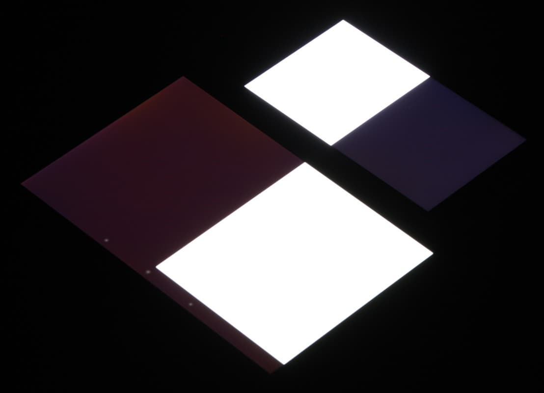 При перпендикулярном взгляде равномерность черного поля неидеальная, так как по краю есть участки с немного повышенной яркостью черного поля: