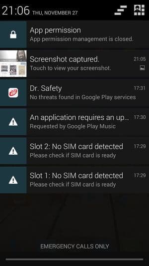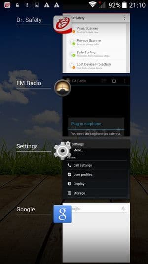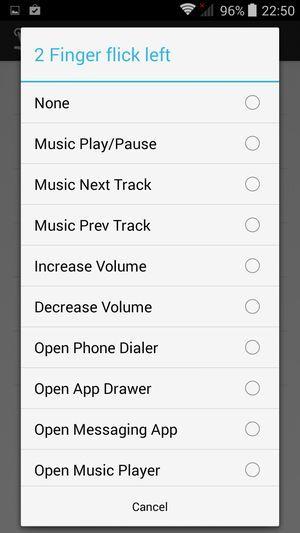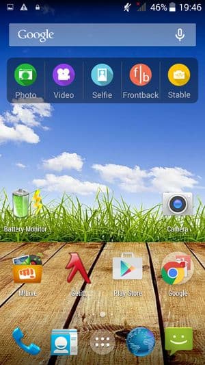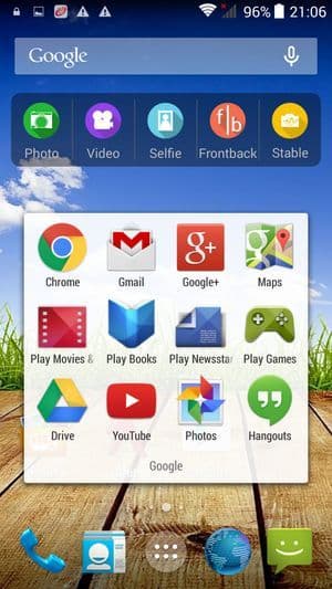 Однако в смартфон добавлено несколько специфических функций и фирменных виджетов, улучшающих и расширяющих взаимодействие с устройством. Например, на экране блокировки с помощью интерактивной панели Blinkscreen выводятся уведомления на экран, при этом каждое имеет свой цвет, который можно задать в настройках. Боковым взмахом можно перейти к панели Quicklook, содержащей обзор новостей — аналог BlinkFeed от HTC. Центральный виджет Trending apps содержит набор полезных утилитарных программ, таких как Clean Master, например. Смартфон понимает работу с жестами, причем, с помощью специального меню можно переназначить функции, возлагаемые на тот или иной жест, по своему вкусу. Иконка для специального меню назначения жестов появляется, если нажать крайнюю сенсорную кнопку слева под экраном. Меню последних открытых приложений появится, если подержать эту кнопку подольше.