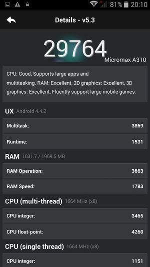 Аппаратная платформа Micromax Canvas Nitro строится на базе восьмиядерной однокристальной системы (SoC) MediaTek MT6592, официально представленной уже год назад. Особенностью SoC является то, что в ее конфигурацию входит восемь полноценных процессорных ядер, [одновременно] функционирующих на частоте до 2 ГГц (в данном случае — 1,7 ГГц). Правда, используются всего лишь ядра ARM Cortex-A7.