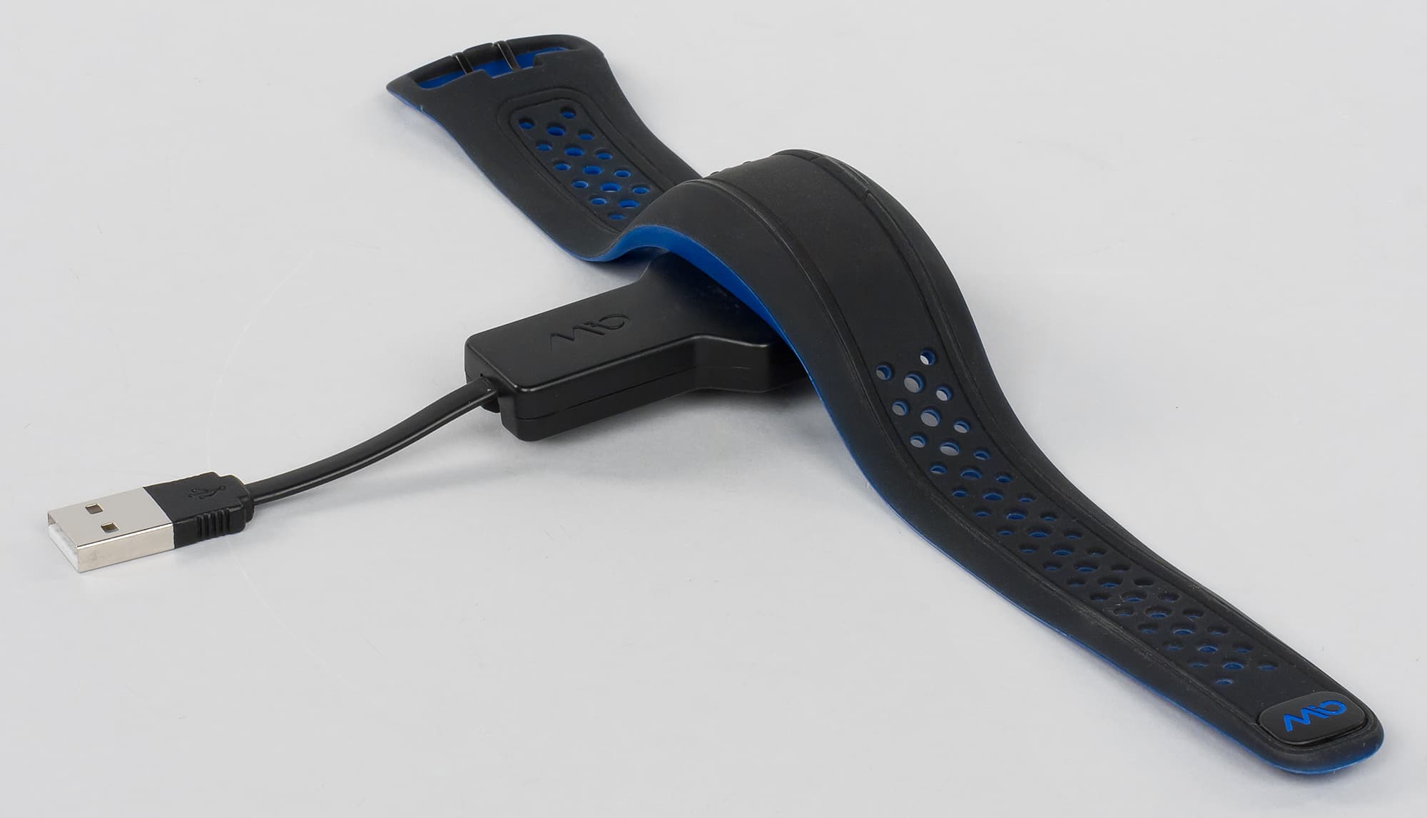 Внутри — сам браслет, зарядный магнитный крэдл с прикрепленным к нему USB-кабелем (надо подсоединять либо к USB-порту компьютера, либо к зарядному устройству от смартфона/планшета),