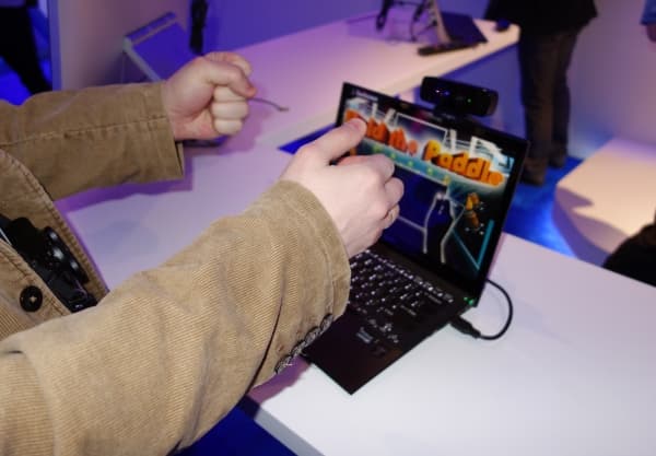 Наибольший интерес наряду с новой SoC вызвала у посетителей стенда необычная 3D-камера, разработанная Intel. Это чрезвычайно компактное устройство может быть закреплено где угодно — например, на мониторе или крышке ноутбука, и призвано, помимо традиционных функций, таких как запись 2D- и 3D-изображений, выполнять роль контроллера для распознавания жестов и даже мимики лица, а также эффективного средства для взаимодействия с дополненной реальностью.