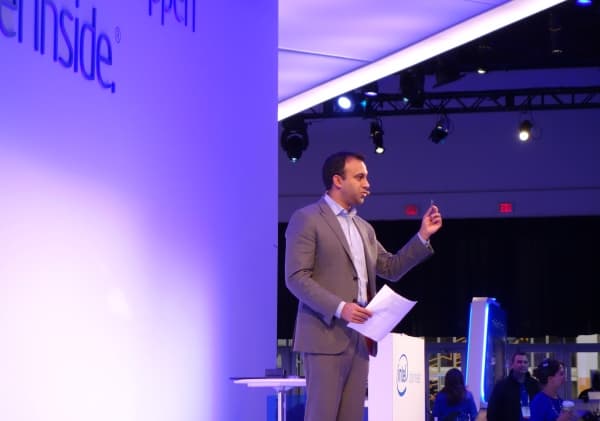 И начать, пожалуй, стоит с одного из самых значимых для индустрии «столпов», компании Intel, на примере которой опасность несвоевременного реагирования на смещение акцентов потребительских интересов прослеживается как никогда ярко. Запрыгнувшая на последнюю подножку набравшего ход поезда под названием «мобильные гаджеты» компания теперь пожинает плоды самонадеянности, с огромным трудом пытаясь отвоевать свою долю «распиленного» уже рынка смартфонов и планшетов. В этом году, как и прежде, Intel заняла со своим огромным стендом наиболее заметную позицию прямо напротив центрального входа в главный павильон выставки, но рассказывала преимущественно о 3D-камерах, показывала виртуальную дополненную реальность, демонстрировала бесконтактное управление жестами и делилась впечатлениями от работы различных умных гаджетов, основанных на ее новой мобильной платформе для носимых устройств.