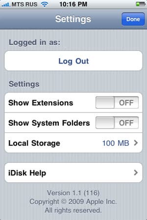 Еще проще работа с iDisc. iDisc представляет собой виртуальный винчестер, на который вы можете записывать документы, видеофайлы, музыку и фотографии. Емкость винчестера — 10 ГБ (можно расширить за дополнительную плату). Безусловный плюс iDisc в том, что доступ в него очень удобен из компьютеров Mac под управлением операционных систем Mac OS X 10.5 Leopard и 10.6 Snow Leopard. iDisc отображается в них как обычный винчестер, поэтому сохранение файлов становится ничуть не более сложным, чем на физический жесткий диск.