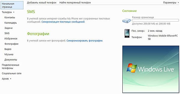 Корпорация Microsoft, как и ее конкуренты, видит будущее в интернете и постепенной миграции туда настольных приложений. Уже пару лет Microsoft продвигает концепцию Software as a service, платформу для «облачных» вычислений Microsoft Azure, а также сервисы Microsoft Live. My Phone — шаг в том же направлении. Любопытно, что Microsoft, в отличие от Apple, пока что предлагает Windows Live и My Phone беслпатно (в базовых вариантах). Будет ли эта политика продолжена и в дальнейшем — сказать сложно. Но, понятное дело, Microsoft делает это не в благотворительных целях :-) Наверняка здесь есть продуманная стратегия, ориентированная на долгосрочную прибыль. Пока же мы имеем то, что имеем. Ни для использования My Phone, ни для установки бесплатных программ из MarketPlace (забегаю вперед) не требуется никаких кредиток и платных подписок. Достаточно завести аккаунт в Windows Live (Windows Live ID) — и можно пользоваться основными возможностями нижеописанных сервисов. Это — большой плюс по сравнению с Apple.