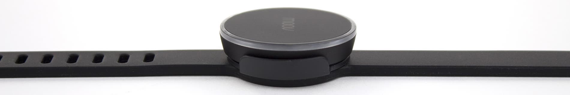 К крэдлу в браслете Moov крепится с помощью «лапок», обхватывающих его по бокам. Там нет никаких магнитов — просто при надавливании на Moov, помещенный в крэдл, «лапки», обхватывающие его, немного разъезжаются, и желобки на Moov совмещаются с выступами на внутренней стороне «лапок».