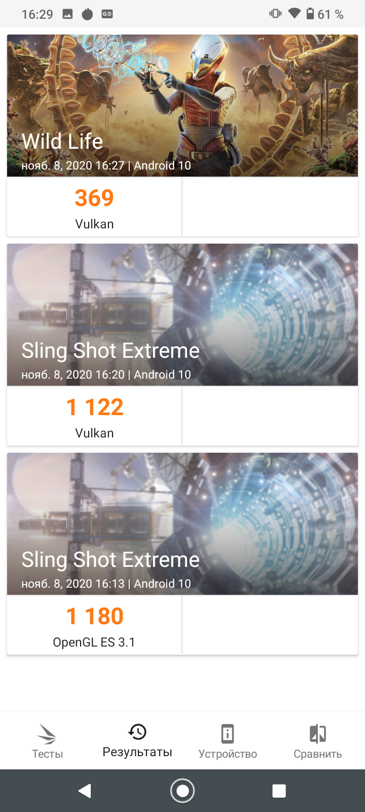 | 3DMark Sling Shot Ex Vulkan (больше — лучше) | 1122 | 1393 | 1335 | 2256 | 2366 |