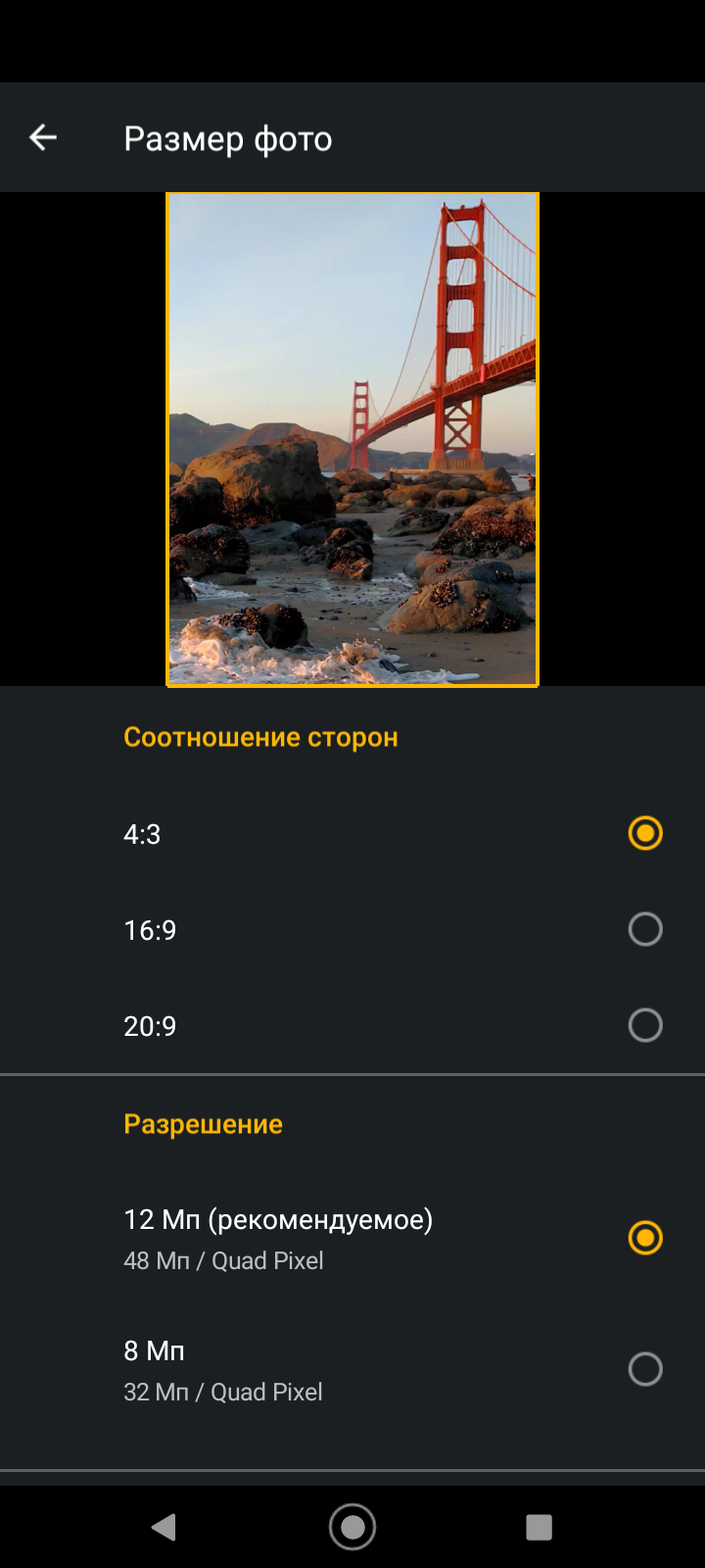 Интерфейс управления съемкой своеобразный, но пользователям смартфонов Motorola он должен быть хорошо знаком. В отличие от других, разработчик не стал в своих смартфонах предлагать возможность снимать в полном разрешении: технология объединения пикселей здесь работает всегда.