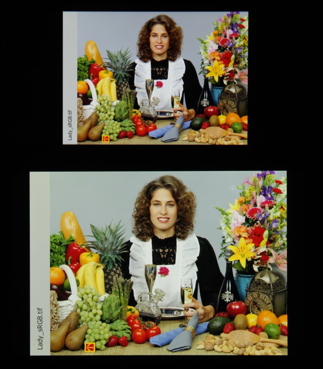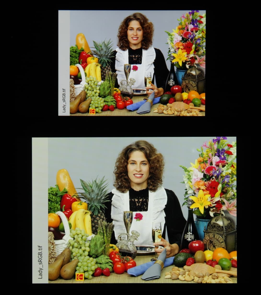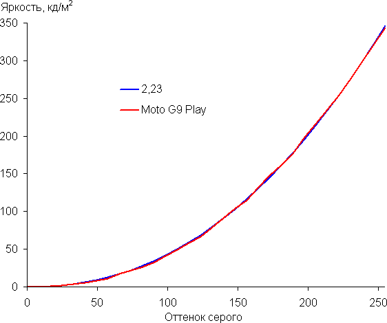 Видно, что цвета не сильно изменились у обоих экранов, но у Moto G9 Play контраст уменьшился в большей степени из-за сильного высветления черного и большего снижения яркости.
