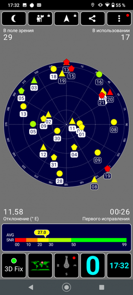 Навигационный модуль работает с GPS, A-GPS, Глонасс, Galileo. Первые спутники при холодном старте обнаруживаются быстро, точность позиционирования не вызывает претензий.