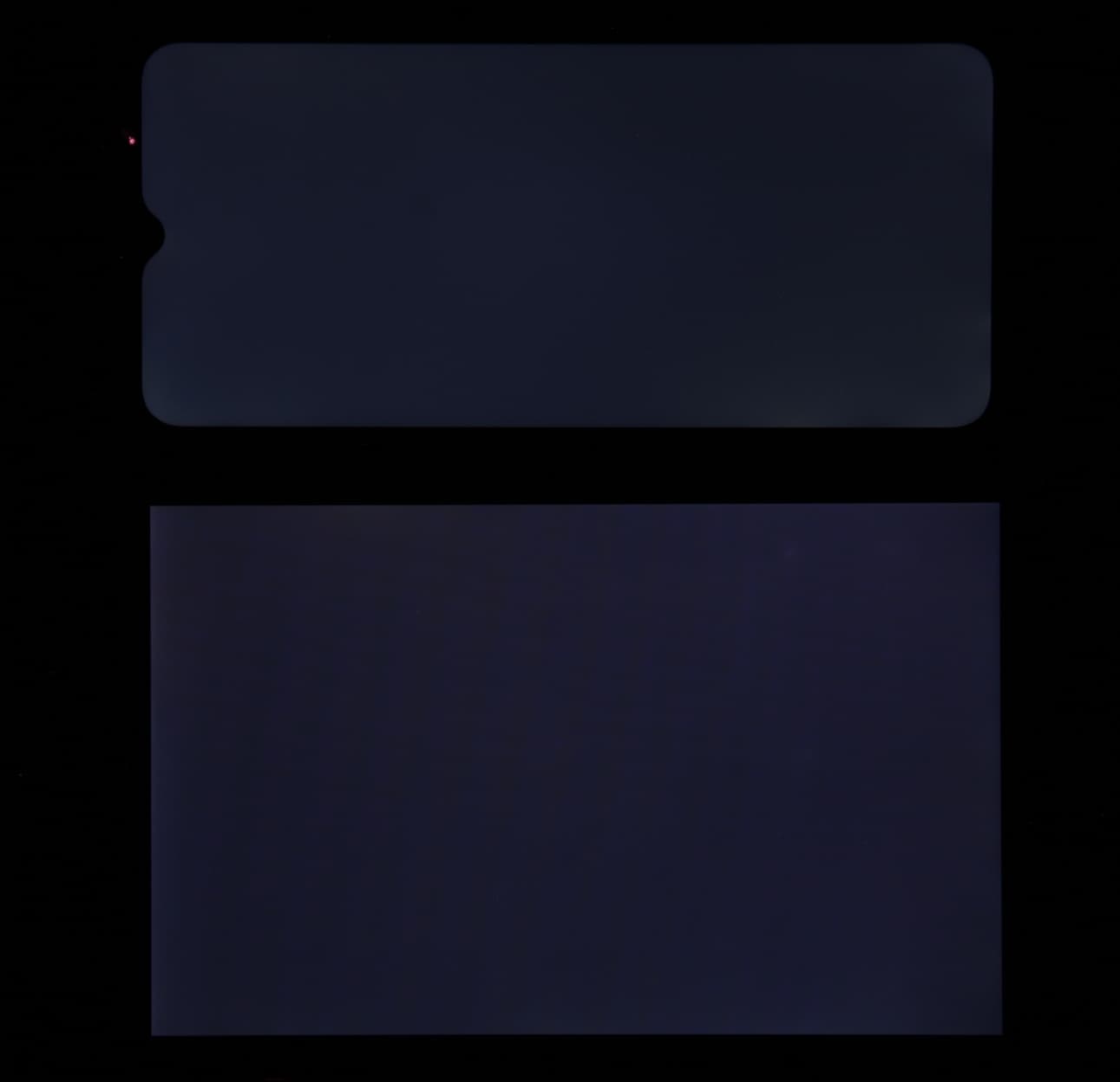 При перпендикулярном взгляде равномерность черного поля средняя (для наглядности яркость подсветки на смартфоне выведена на максимум):