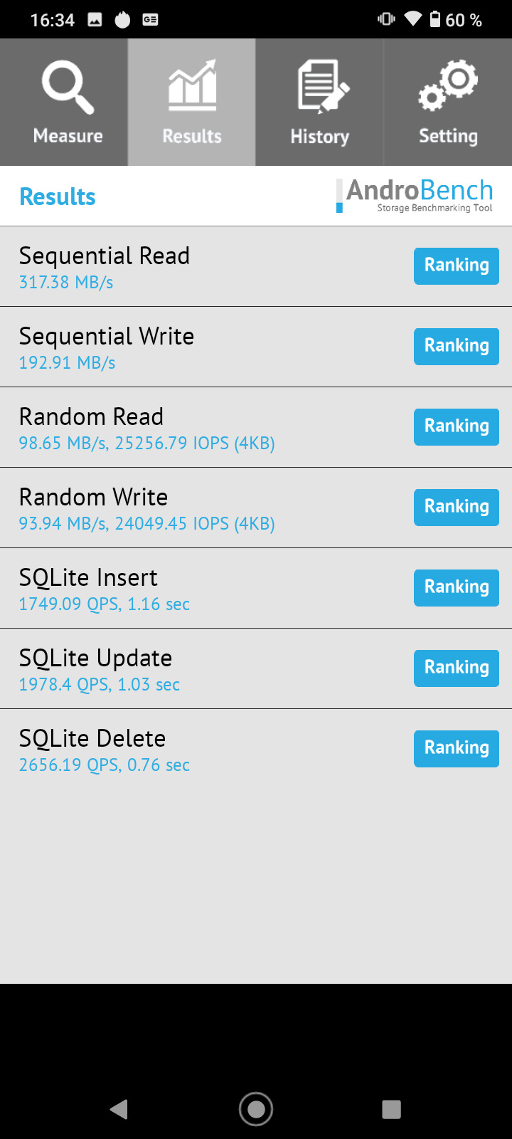 Тестирование традиционно проводилось на обычном уровне энергопотребления без использования функций энергосбережения, хотя таковые в аппарате имеются. Условия тестирования: выставлен минимальный комфортный уровень яркости (примерно 100 кд/м²). Тесты: беспрерывное чтение в программе Moon+ Reader (со стандартной, светлой темой); беспрерывный просмотр видео в HD-качестве (720р) через домашнюю сеть Wi-Fi; игра Injustice 2 с автонастройками графики.