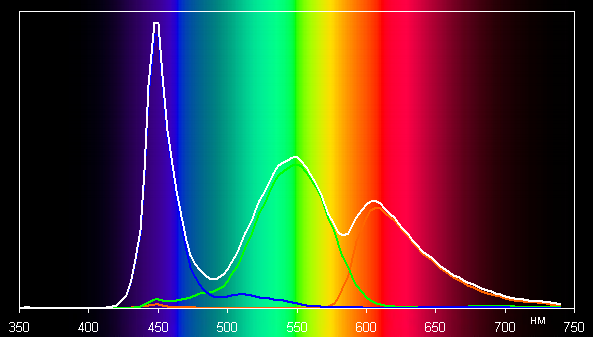 Спектры показывают, что светофильтры матрицы в умеренной степени подмешивают компоненты друг к другу: