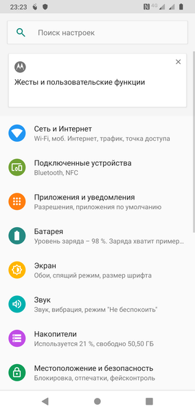 Работает Motorola Moto G8 Plus на программной платформе Google Android 9. Здесь — никаких претензий: чистая ОС Android практически не замусорена дополнительными приложениями (кроме Яндекса), хотя и имеет кое-какие доработки (приложение камеры, например, или поддержка жестов). Плавность работы идеальная, оболочка лаконичная и в целом неплохо оптимизированная.