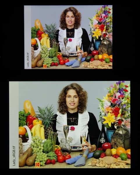 При выборе профилей Яркие и Насыщенные насыщенность цветов последовательно увеличивается за счет небольшого расширения цветового охвата и увеличения цветового контраста: