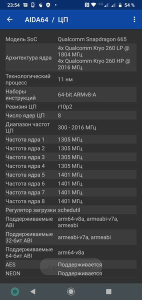 - SoC Qualcomm Snapdragon 665, 8 ядер: 4×Kryo 260 Gold @2,0 ГГц + 4×Kryo 260 Silver @1,8 ГГц