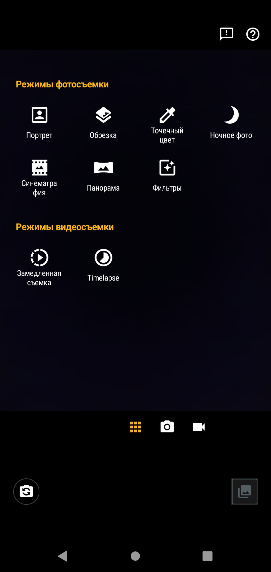 Интерфейс управления камерой довольно запутанный, нет единого перечня всех настроек, что-то нужно выискивать под иконками по углам. Впрочем, возможности здесь широкие, в том числе есть ручной режим съемки и сохранение снимков в RAW.