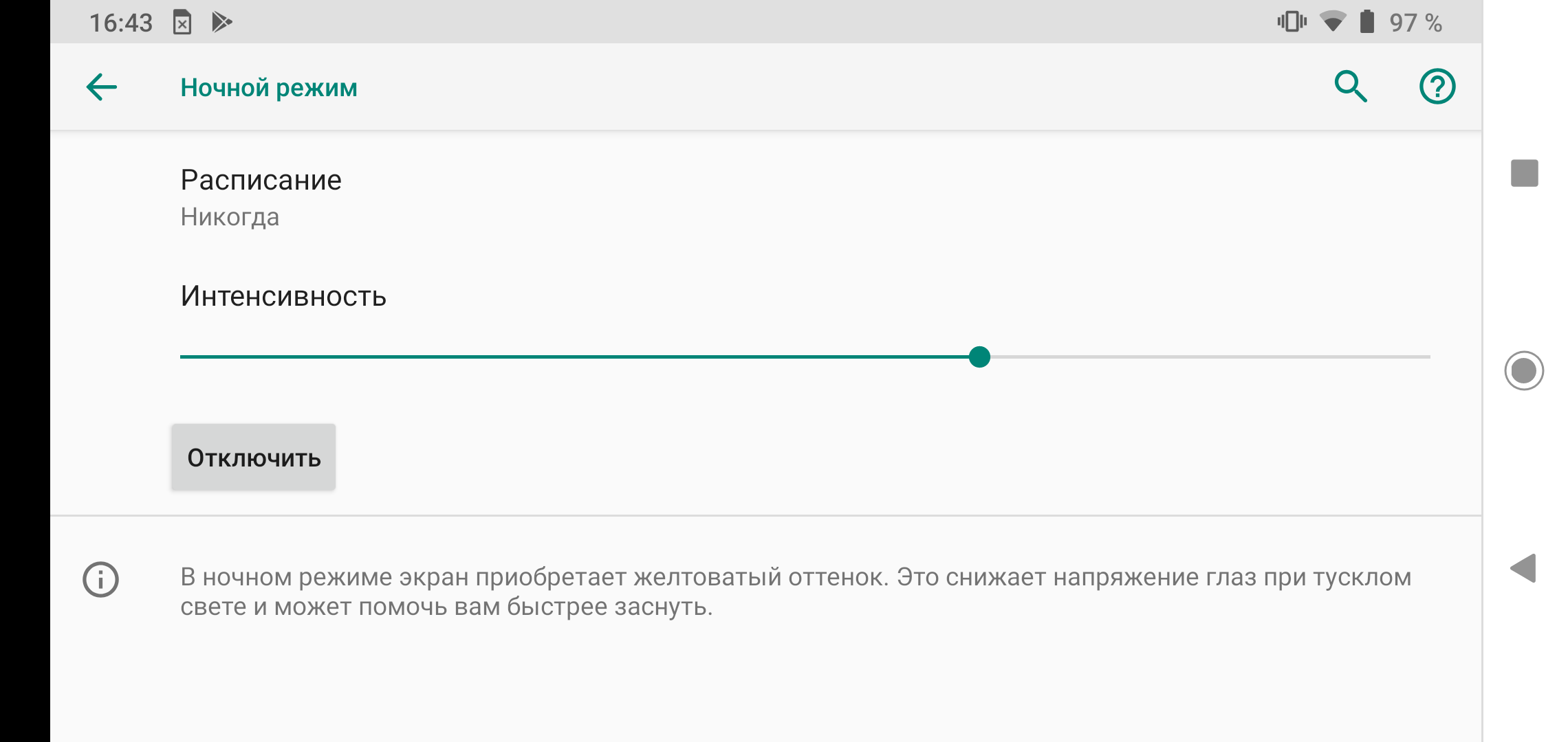 При ручном управлении яркостью и при выводе белого поля во весь экран максимальное значение яркости составило около 510 кд/м², минимальное — 5 кд/м². Максимальная яркость очень высокая, и, учитывая отличные антибликовые свойства, читаемость экрана даже в солнечный день вне помещения должна быть на хорошем уровне. В полной темноте яркость можно понизить до комфортного значения. В наличии автоматическая регулировка яркости по датчику освещенности (он находится у верхнего края фронтальной панели ближе к левому углу). В автоматическом режиме при изменении внешних условий освещенности яркость экрана как повышается, так и понижается. Работа этой функции зависит от положения ползунка регулировки яркости: им пользователь может попытаться выставить желаемый уровень яркости в текущих условиях. Если не вмешиваться, то в полной темноте функция автояркости уменьшает яркость до 7 кд/м² (низковато), в условиях освещенного искусственным светом офиса (примерно 550 лк) устанавливает на 250 кд/м² (нормально), в очень ярком окружении (соответствует освещению ясным днем вне помещения, но без прямого солнечного света — 20000 лк или немного больше) повышает до 510 кд/м² (до максимума, так и нужно). Мы немного увеличили яркость в полной темноте и получили в полной темноте 15 кд/м², в условиях освещенного искусственным светом офиса — 230 кд/м², в очень ярком окружении — 510 кд/м², такой результат нас устроил. Получается, что функция автоподстройки яркости работает адекватно и позволяет пользователю настраивать свою работу под индивидуальные требования. На любом уровне яркости значимая модуляция подсветки отсутствует, поэтому нет и никакого мерцания экрана.
