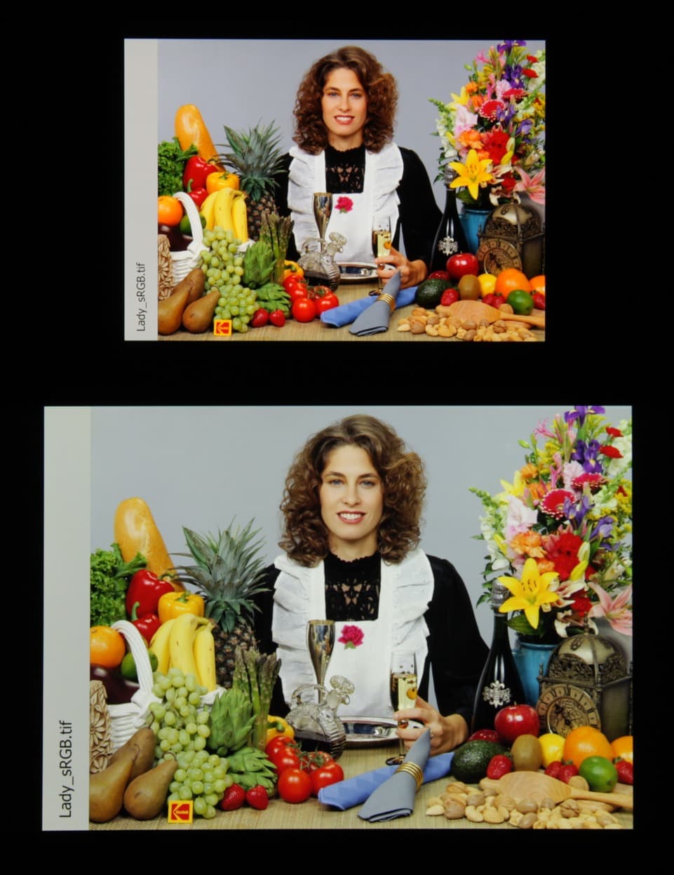 Отметим хорошую равномерность яркости и цветового тона белого поля. И тестовая картинка: