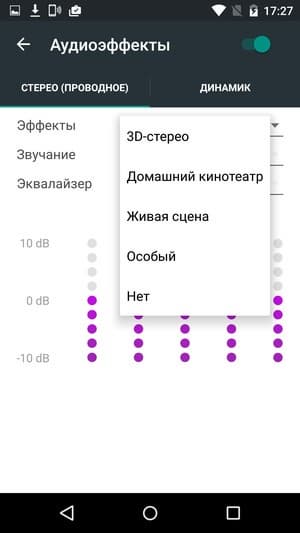 Смартфон звучит впечатляюще: аппарат оборудован лишь одним основным динамиком, стереопанораму он создать не может, однако смартфон издает очень громкий и при этом чистый на максимальном уровне звук, с заметным присутствием низких частот. В наушниках ситуация не хуже: звук чистый, яркий и густой, спектр частот широк. И в наушниках, и во внешнем динамике максимальный уровень громкости достаточен, но не чрезмерен. Звук весьма приятный для слуха. Все настройки объединены фирменным проигрывателем Google Play Music в виде эквалайзера и дополнительных предустановленных значений.